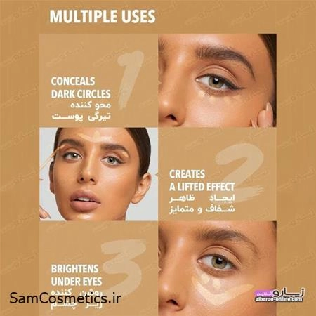 روش مصرف: روی ناحیه چشم بمالید و روی گوشه داخلی چشم و پلک پایین پخش کنید. در مناطقی از صورت که نیاز به ماسک کردن دارند استفاده کنید.