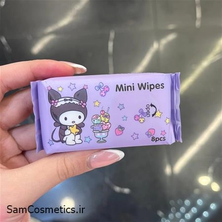 دستمال مرطوب پاک کننده آرایش مینی کرومی بنفش بسته 8 تایی
